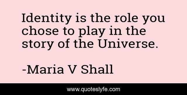 This page presents the quote "Identity is the role you chose to play in the story of the Universe.". Author of this quote is Maria V Shall. This quote is about branding, personal-branding, identity, who-am-i,.