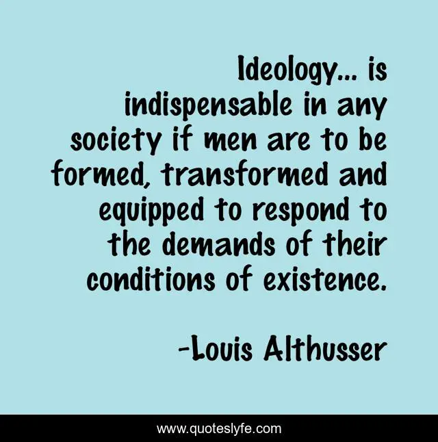 "Louis Althusser Quotes." Quoteslyfe.com, 2025. Mon. 08 Dec. 2025. <https://www.quoteslyfe.com/quote/Ideology-is-indispensable-in-any-society-if-329193>.