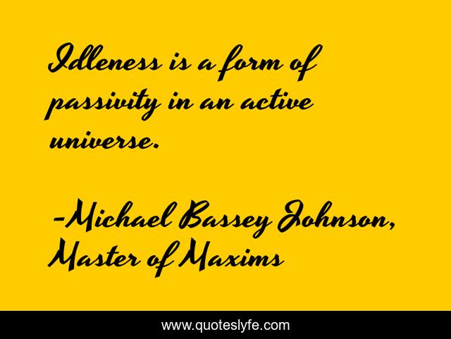 "Michael Bassey Johnson, Master of Maxims Quotes." Quoteslyfe.com, 2025. Fri. 05 Dec. 2025. <https://www.quoteslyfe.com/quote/Idleness-is-a-form-of-passivity-in-151594>.