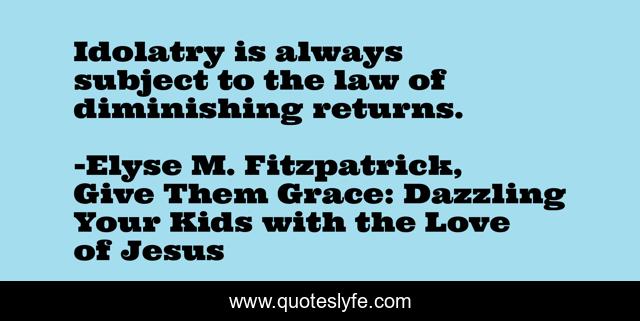 This page presents the quote "Idolatry is always subject to the law of diminishing returns.". Author of this quote is Elyse M. Fitzpatrick, Give Them Grace: Dazzling Your Kids with the Love of Jesus. .