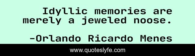 This page presents the quote "Idyllic memories are merely a jeweled noose.". Author of this quote is Orlando Ricardo Menes. This quote is about memories, life, sadness, thoughts-on-life,.