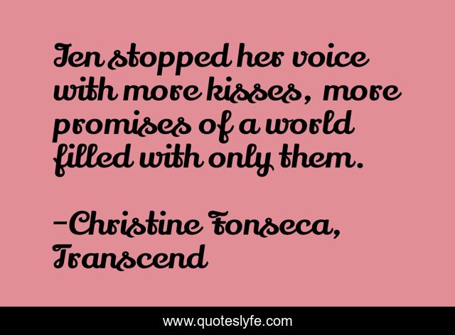 This page presents the quote "Ien stopped her voice with more kisses, more promises of a world filled with only them.". Author of this quote is Christine Fonseca, Transcend. This quote is about romance, ya, historical, psychological-thriller,.