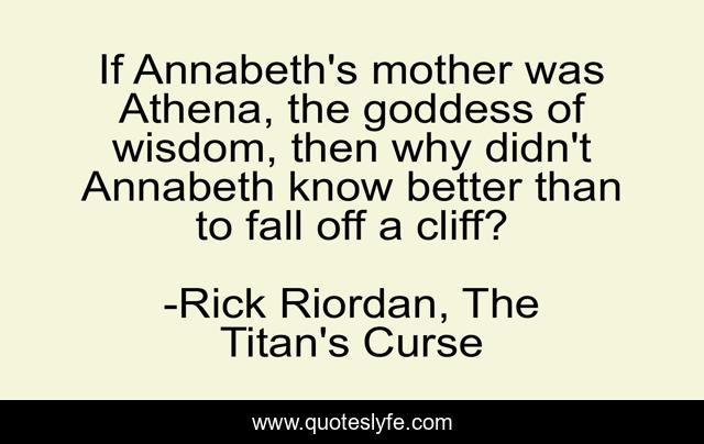 This page presents the quote "If Annabeth's mother was Athena, the goddess of wisdom, then why didn't Annabeth know better than to fall off a cliff?". Author of this quote is Rick Riordan, The Titan's Curse. This quote is about athena, percy-jackson, annabeth-chase, wisdom,.