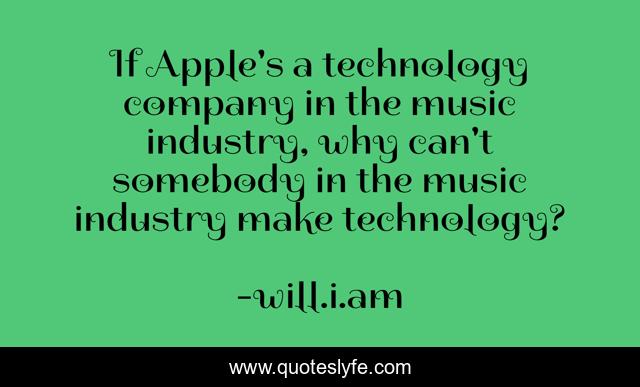 This page presents the quote "If Apple's a technology company in the music industry, why can't somebody in the music industry make technology?". Author of this quote is will.i.am. This quote is about company, music, apple,.