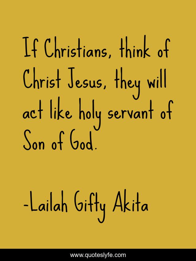 This page presents the quote "If Christians, think of Christ Jesus, they will act like holy servant of Son of God.". Author of this quote is Lailah Gifty Akita. This quote is about christ-jesus, christian, think, act,.