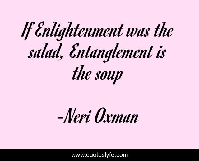 This page presents the quote "If Enlightenment was the salad, Entanglement is the soup". Author of this quote is Neri Oxman. This quote is about entanglement, science, enlightenment,.