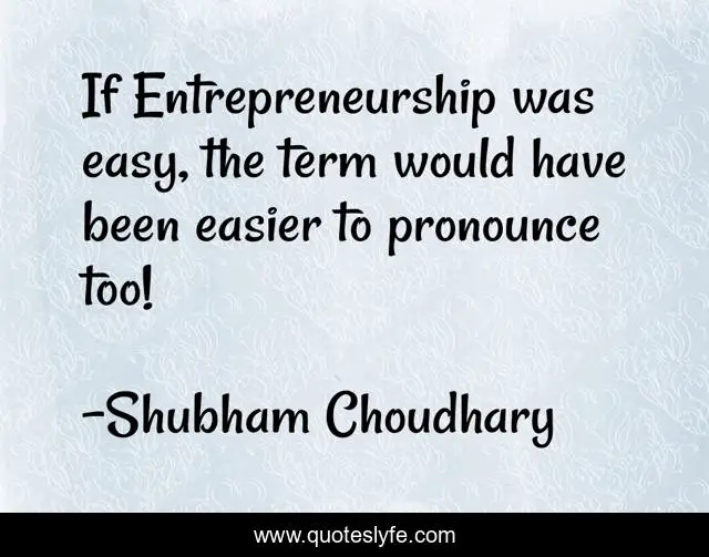 This page presents the quote "If Entrepreneurship was easy, the term would have been easier to pronounce too!". Author of this quote is Shubham Choudhary. This quote is about talex, entrepreneurship,.