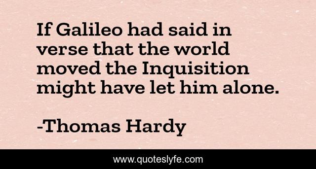This page presents the quote "If Galileo had said in verse that the world moved the Inquisition might have let him alone.". Author of this quote is Thomas Hardy. This quote is about poets, poetry,.