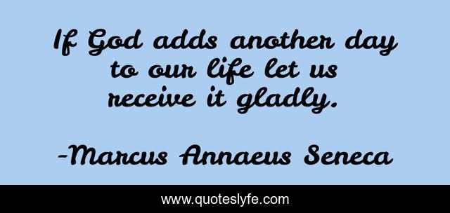 This page presents the quote "If God adds another day to our life let us receive it gladly.". Author of this quote is Marcus Annaeus Seneca. .