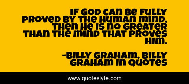 This page presents the quote "If God can be fully proved by the human mind, then He is no greater than the mind that proves Him.". Author of this quote is Billy Graham, Billy Graham in Quotes. This quote is about god, billy-graham,.