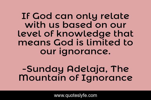 This page presents the quote "If God can only relate with us based on our level of knowledge that means God is limited to our ignorance.". Author of this quote is Sunday Adelaja, The Mountain of Ignorance. This quote is about mountain, life, darkness, power, danger, god, people, ignorance, relationship,.