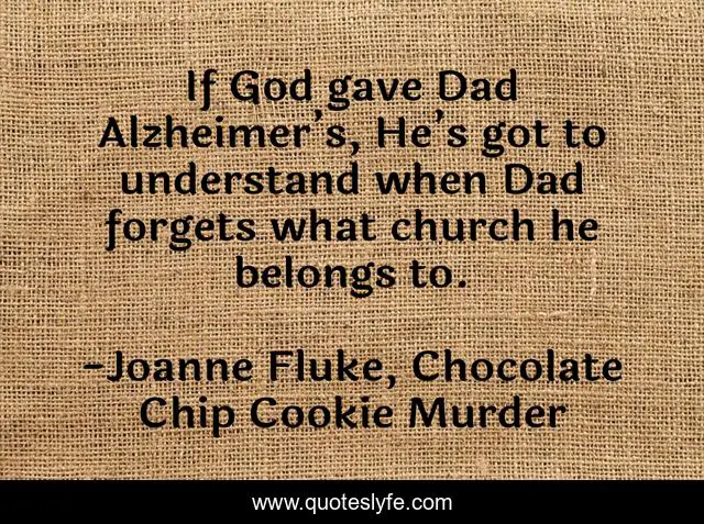 "Joanne Fluke, Chocolate Chip Cookie Murder Quotes." Quoteslyfe.com, 2025. Sat. 06 Dec. 2025. <https://www.quoteslyfe.com/quote/If-God-gave-Dad-Alzheimer-s-He-160034>.