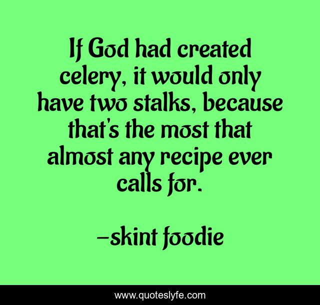 This page presents the quote "If God had created celery, it would only have two stalks, because that's the most that almost any recipe ever calls for.". Author of this quote is skint foodie. This quote is about food, cooking,.