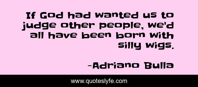 This page presents the quote "If God had wanted us to judge other people, we'd all have been born with silly wigs.". Author of this quote is Adriano Bulla. This quote is about equality, human-rights, equality-and-attitude, equality-of-cultures, adriano-bulla, judging, quotation,.