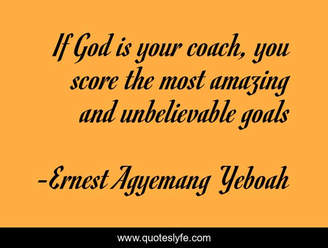 This page presents the quote "If God is your coach, you score the most amazing and unbelievable goals". Author of this quote is Ernest Agyemang Yeboah. This quote is about food-for-thought, god-s-purpose, doing-the-will-of-god, living-life,.