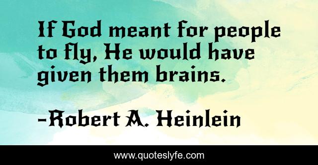 This page presents the quote "If God meant for people to fly, He would have given them brains.". Author of this quote is Robert A. Heinlein. This quote is about knowledge, intelligence, modernity, improvement, future, rationality, freedom, progress, technology,.