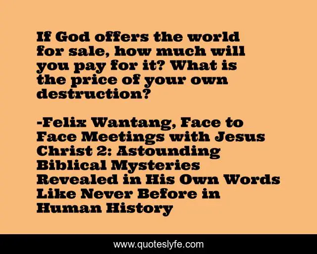 "Felix Wantang, Face to Face Meetings with Jesus Christ 2: Astounding Biblical Mysteries Revealed in His Own Words Like Never Before in Human History Quotes." Quoteslyfe.com, 2025. Sat. 06 Dec. 2025. <https://www.quoteslyfe.com/quote/If-God-offers-the-world-for-sale-89780>.