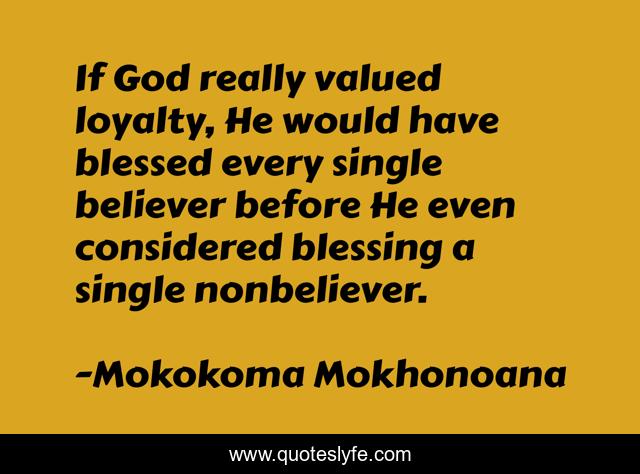 "Mokokoma Mokhonoana Quotes." Quoteslyfe.com, 2025. Sat. 06 Dec. 2025. <https://www.quoteslyfe.com/quote/If-God-really-valued-loyalty-He-would-76246>.