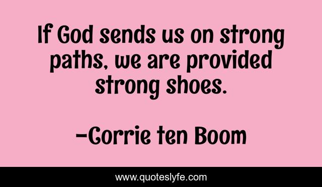 This page presents the quote "If God sends us on strong paths, we are provided strong shoes.". Author of this quote is Corrie ten Boom. .