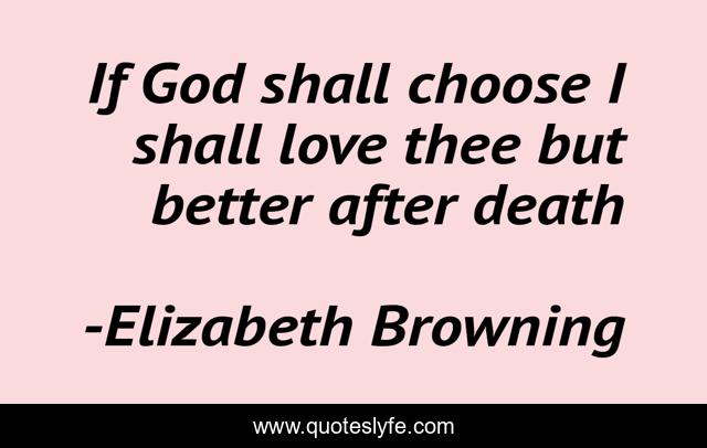 This page presents the quote "If God shall choose I shall love thee but better after death". Author of this quote is Elizabeth Browning. This quote is about last-words, death, love, dying, affection,.