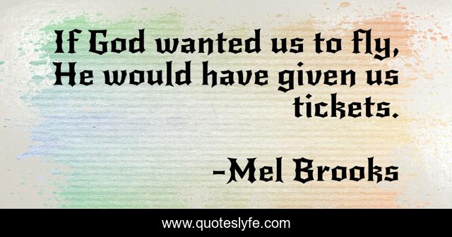 This page presents the quote "If God wanted us to fly, He would have given us tickets.". Author of this quote is Mel Brooks. This quote is about fly, funny, comedy, us,.
