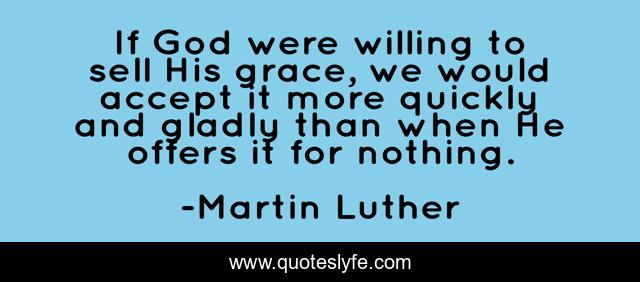 This page presents the quote "If God were willing to sell His grace, we would accept it more quickly and gladly than when He offers it for nothing.". Author of this quote is Martin Luther. This quote is about god, grace,.