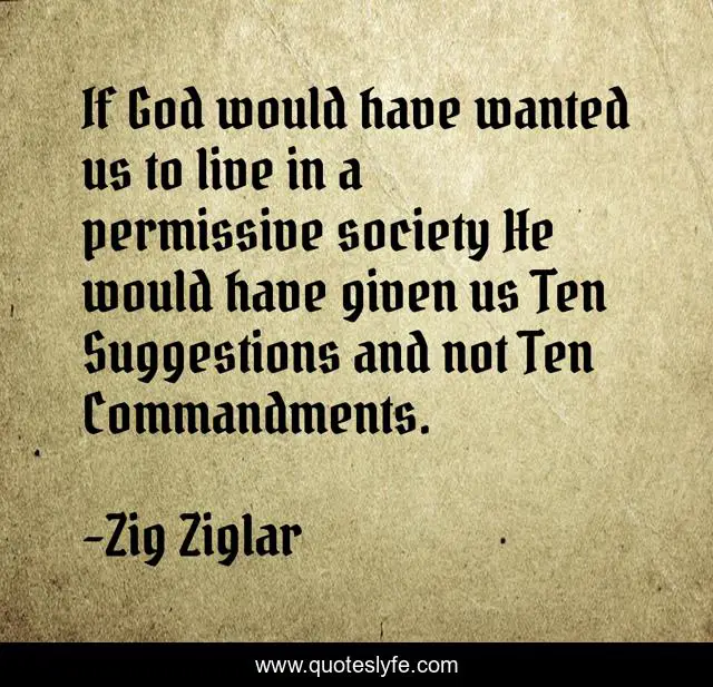 This page presents the quote "If God would have wanted us to live in a permissive society He would have given us Ten Suggestions and not Ten Commandments.". Author of this quote is Zig Ziglar. .