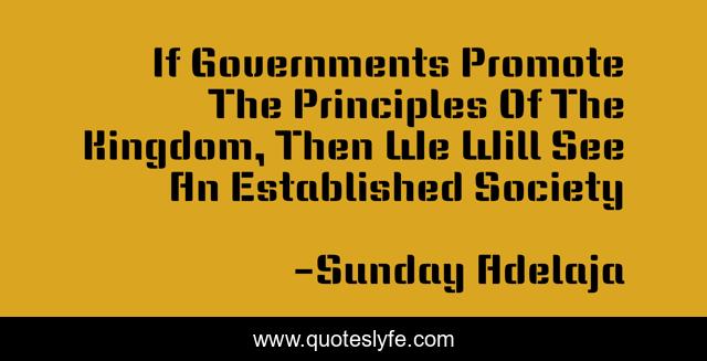 This page presents the quote "If Governments Promote The Principles Of The Kingdom, Then We Will See An Established Society". Author of this quote is Sunday Adelaja. This quote is about kingdom, government, society, principle, promote, establish,.