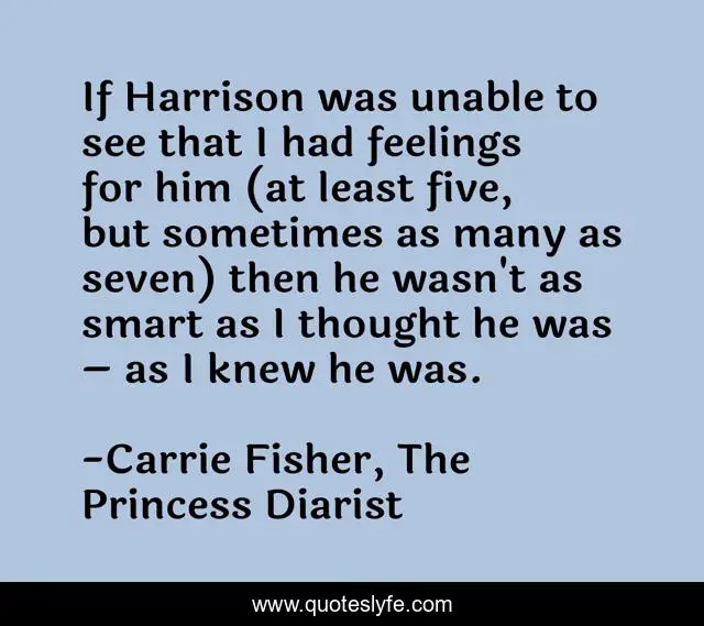 "Carrie Fisher, The Princess Diarist Quotes." Quoteslyfe.com, 2025. Sat. 06 Dec. 2025. <https://www.quoteslyfe.com/quote/If-Harrison-was-unable-to-see-that-161903>.
