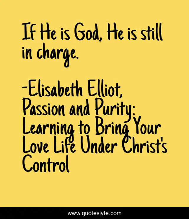"Elisabeth Elliot, Passion and Purity: Learning to Bring Your Love Life Under Christ's Control Quotes." Quoteslyfe.com, 2025. Mon. 08 Dec. 2025. <https://www.quoteslyfe.com/quote/If-He-is-God-He-is-still-62204>.