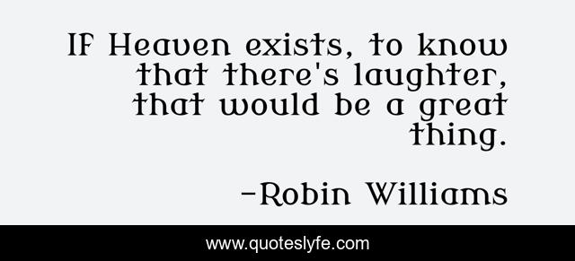This page presents the quote "If Heaven exists, to know that there's laughter, that would be a great thing.". Author of this quote is Robin Williams. This quote is about heaven, laughter,.