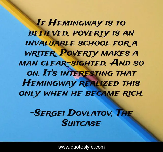 This page presents the quote "If Hemingway is to believed, poverty is an invaluable school for a writer. Poverty makes a man clear-sighted. And so on. It's interesting that Hemingway realized this only when he became rich.". Author of this quote is Sergei Dovlatov, The Suitcase. .