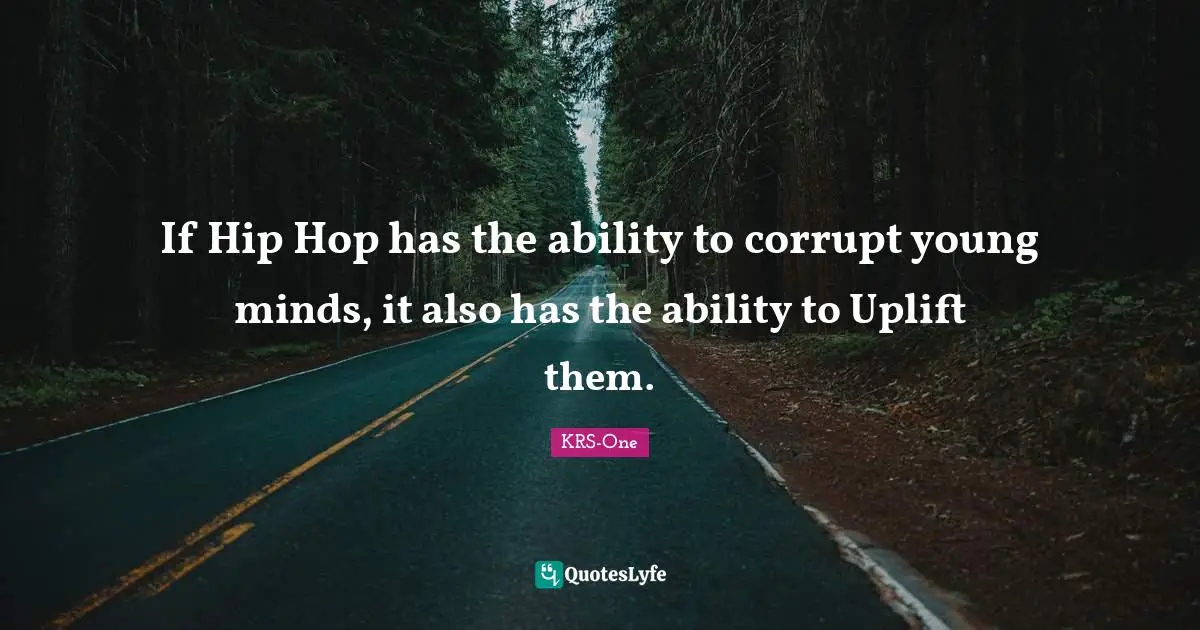 This page presents the quote "If Hip Hop has the ability to corrupt young minds, it also has the ability to Uplift them.". Author of this quote is KRS-One. This quote is about young minds, hip hop, mind, ability, uplifting,.