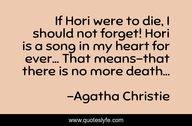 This page presents the quote "If Hori were to die, I should not forget! Hori is a song in my heart for ever... That means-that there is no more death...". Author of this quote is Agatha Christie. This quote is about detective, romance, love, affection, crime,.