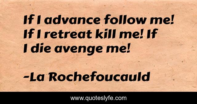 This page presents the quote "If I advance follow me! If I retreat kill me! If I die avenge me!". Author of this quote is La Rochefoucauld. This quote is about leadership, leaders,.