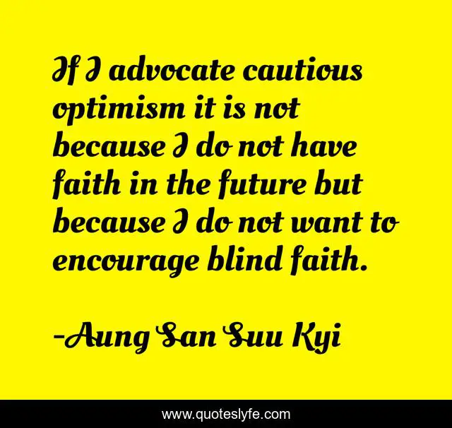 This page presents the quote "If I advocate cautious optimism it is not because I do not have faith in the future but because I do not want to encourage blind faith.". Author of this quote is Aung San Suu Kyi. This quote is about blind, future, optimism,.