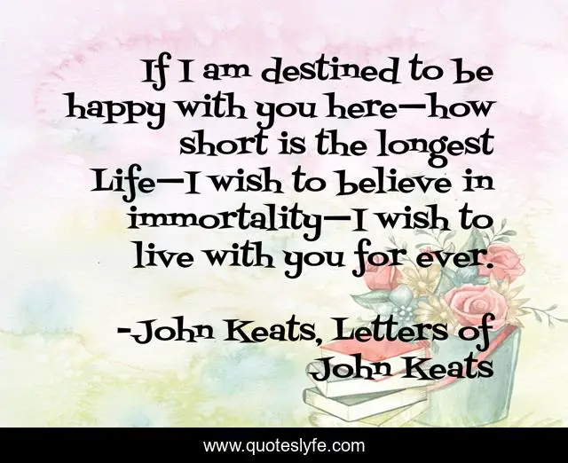 This page presents the quote "If I am destined to be happy with you here—how short is the longest Life—I wish to believe in immortality—I wish to live with you for ever.". Author of this quote is John Keats, Letters of John Keats. This quote is about life, love, happiness, affection,.