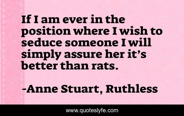 This page presents the quote "If I am ever in the position where I wish to seduce someone I will simply assure her it’s better than rats.". Author of this quote is Anne Stuart, Ruthless. This quote is about rake, historical-romance,.