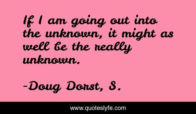 This page presents the quote "If I am going out into the unknown, it might as well be the really unknown.". Author of this quote is Doug Dorst, S.. This quote is about life-philosophy, inspirational, enthusiasm,.