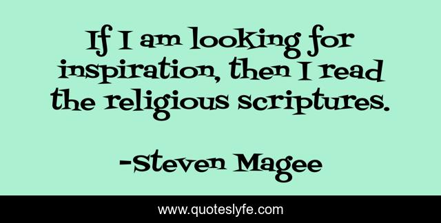 This page presents the quote "If I am looking for inspiration, then I read the religious scriptures.". Author of this quote is Steven Magee. This quote is about scriptures, holy, read, god, jesus, looking, lord, religious, spirit,.