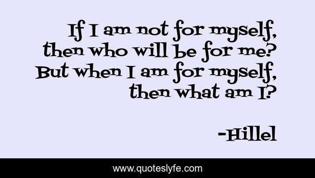 This page presents the quote "If I am not for myself, then who will be for me? But when I am for myself, then what am I?". Author of this quote is Hillel. .