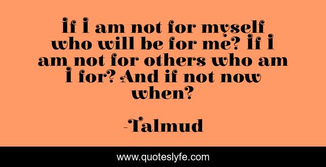 This page presents the quote "If I am not for myself who will be for me? If I am not for others who am I for? And if not now when?". Author of this quote is Talmud. This quote is about helping, people,.