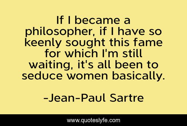 This page presents the quote "If I became a philosopher, if I have so keenly sought this fame for which I'm still waiting, it's all been to seduce women basically.". Author of this quote is Jean-Paul Sartre. This quote is about waiting, still, fame,.