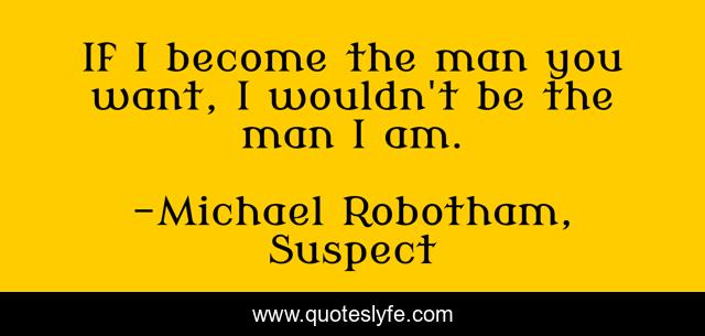 This page presents the quote "If I become the man you want, I wouldn't be the man I am.". Author of this quote is Michael Robotham, Suspect. This quote is about changing, man,.