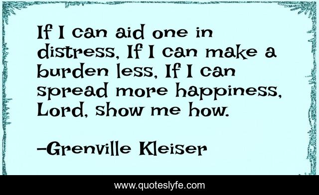 This page presents the quote "If I can aid one in distress, If I can make a burden less, If I can spread more happiness, Lord, show me how.". Author of this quote is Grenville Kleiser. .