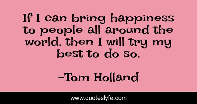 This page presents the quote "If I can bring happiness to people all around the world, then I will try my best to do so.". Author of this quote is Tom Holland. This quote is about world, best, people,.