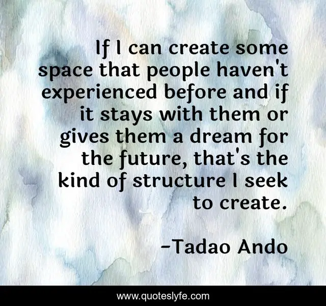 This page presents the quote "If I can create some space that people haven't experienced before and if it stays with them or gives them a dream for the future, that's the kind of structure I seek to create.". Author of this quote is Tadao Ando. This quote is about future, dream, people,.