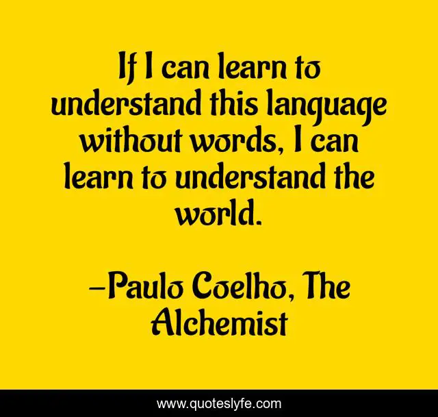 This page presents the quote "If I can learn to understand this language without words, I can learn to understand the world.". Author of this quote is Paulo Coelho, The Alchemist. .