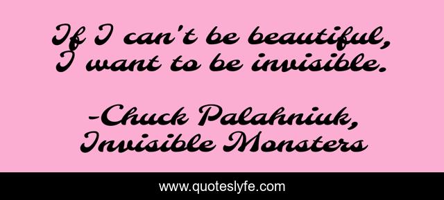 This page presents the quote "If I can't be beautiful, I want to be invisible.". Author of this quote is Chuck Palahniuk, Invisible Monsters. This quote is about invisible, monsters,.