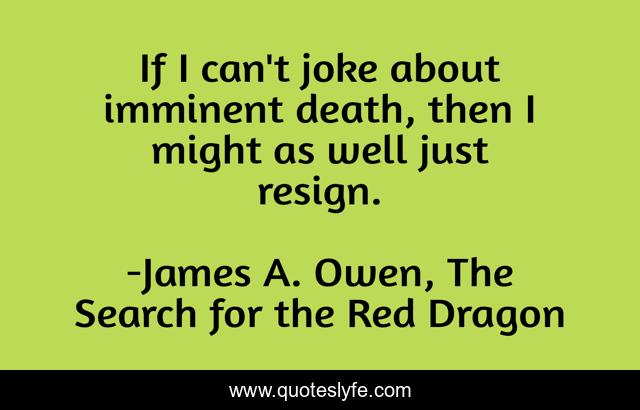 This page presents the quote "If I can't joke about imminent death, then I might as well just resign.". Author of this quote is James A. Owen, The Search for the Red Dragon. This quote is about behaviour, attitude, optimism,.